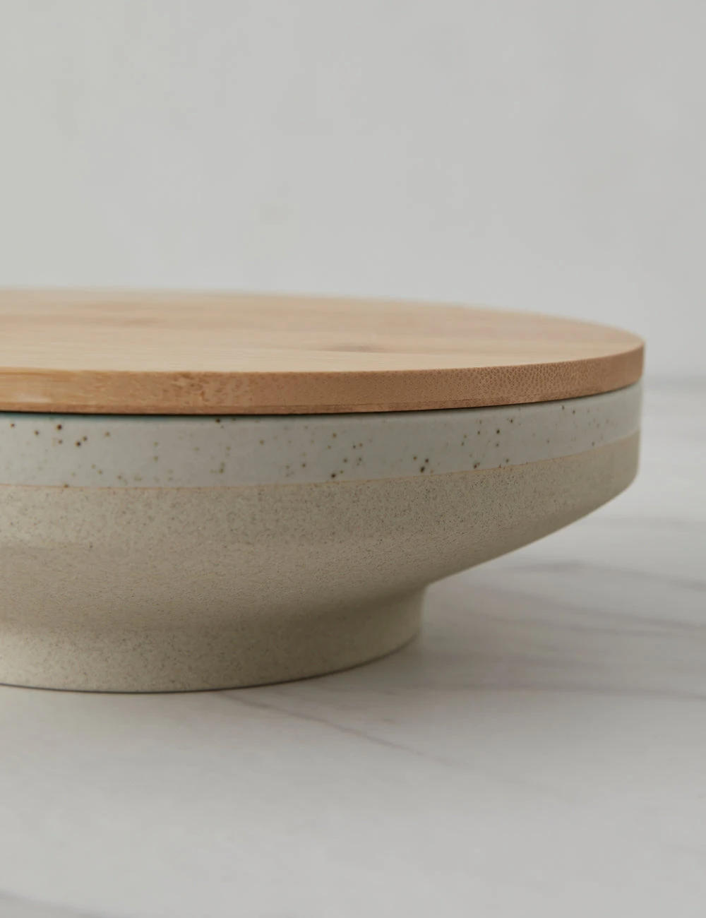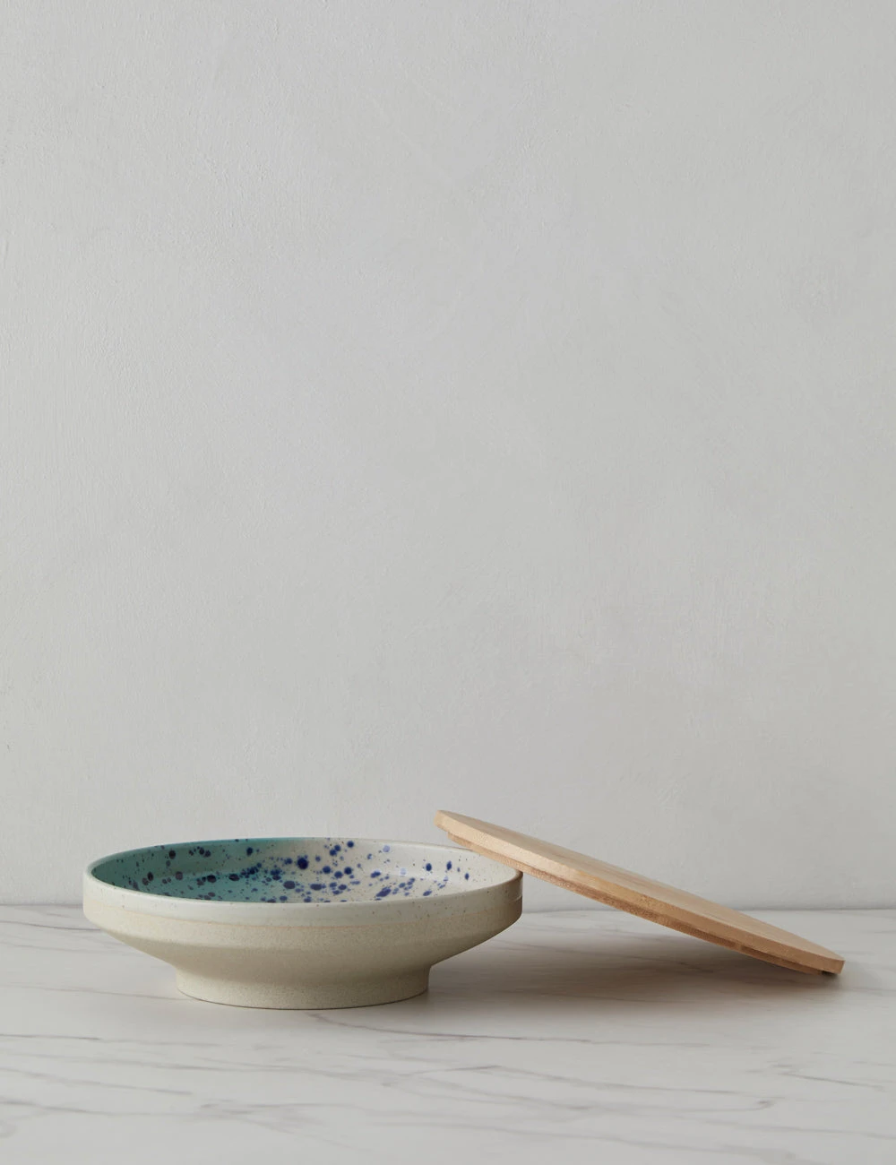 This versatile stoneware bowl with a bamboo lid offers a timeless touch for a modern kitchen. The reactive glaze adds a unique finish to the clean-lined design making this shallow bowl a stylish feature with practical appeal for counter and table.