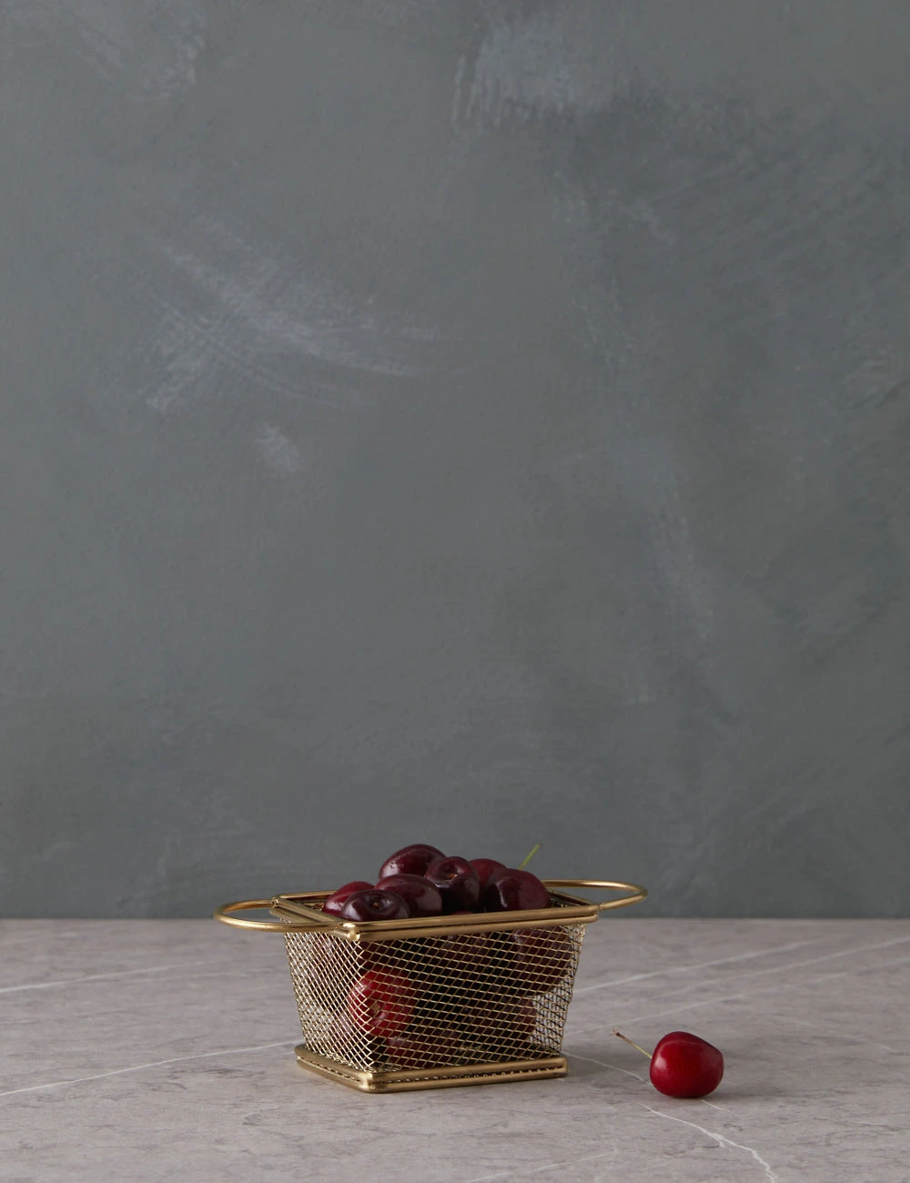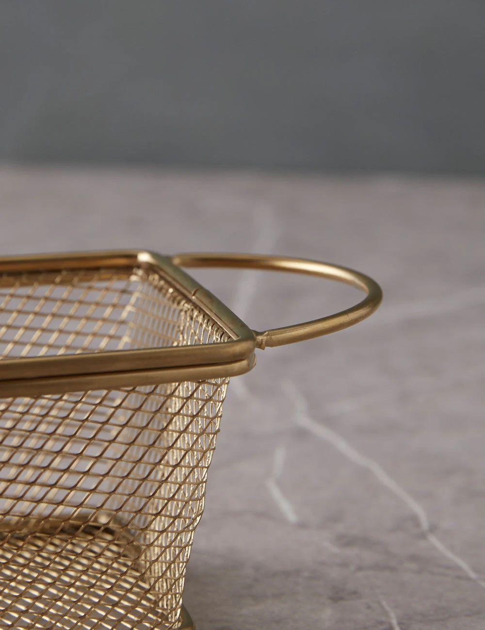 From your kitchen to bath, this small stainless steel basket is the perfect addition for corralling, organizing, or storing essentials. The flat-handled design is as functional as it is stylish, and the gold finish adds a touch of polish to everyday decor.