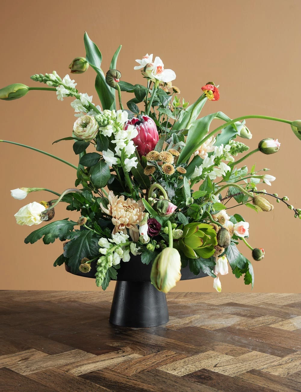 This clean-lined display stand sets off your tabletop or counter with minimalist elegance. In a sleek black finish, this metal pedestal offers versatile appeal in both function and style, from centerpiece decor to a fresh offering of pastries or baked goods.