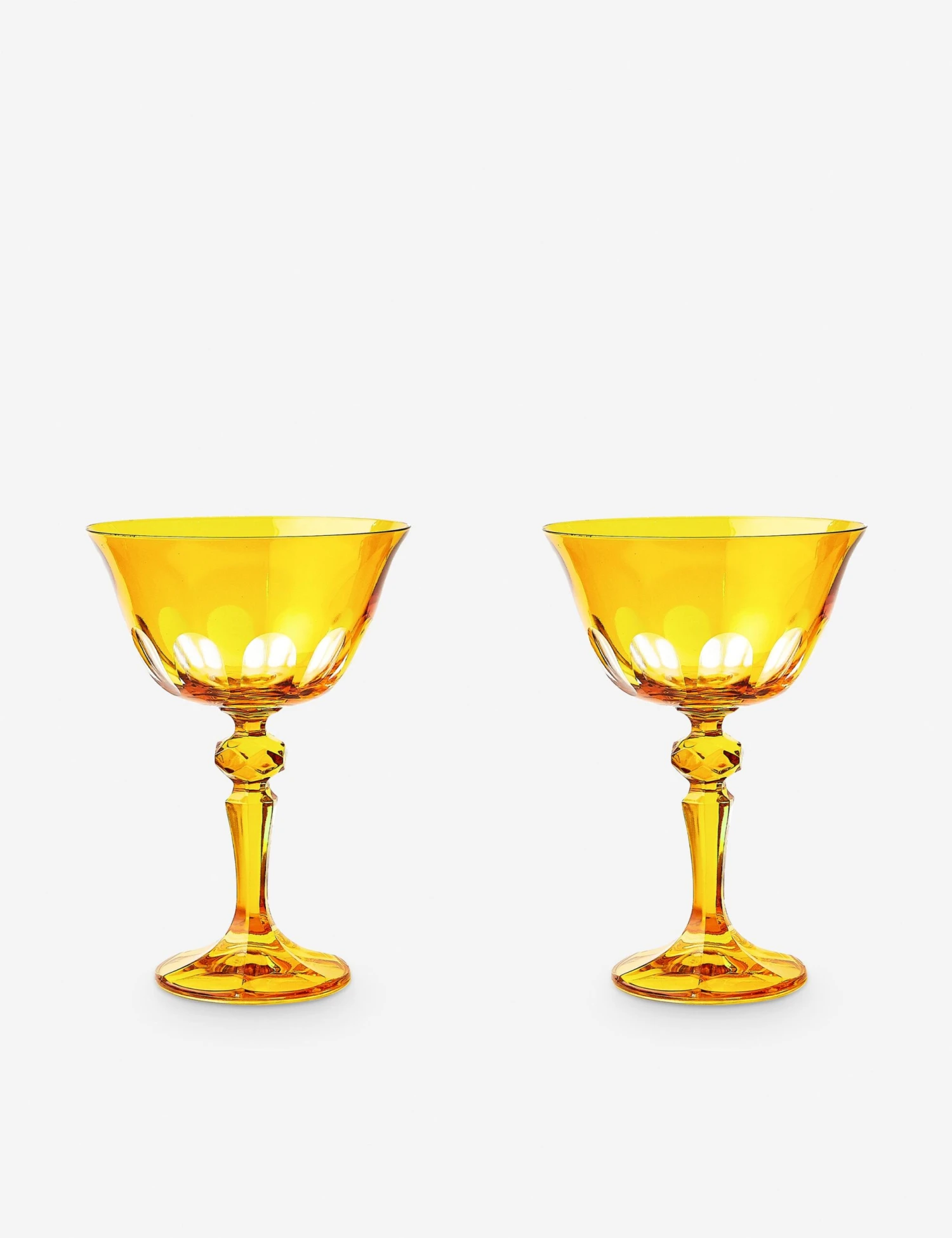 Inspired by a trip to Italy’s beloved floating city, the Rialto collection pays homage to the arching majesty of the Venetian bridge for which it’s named. From champagne to sorbet, this set of coupe glasses brings a lovely touch to any occasion. These colored glasses are finished by hand in Turkey, making each piece a unique artisanal treasure.