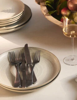 This four-knife set offers a rustic touch with a modern edge. The knives’ curved rosewood handles are embellished with golden fasteners offering a natural grain balance to the high-quality stainless steel. These versatile steak knives are a seamless addition to any tableware collection.