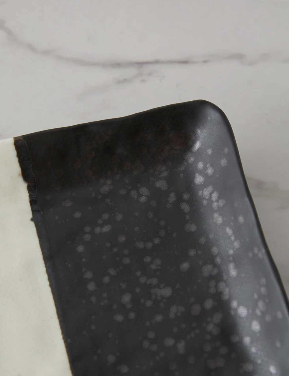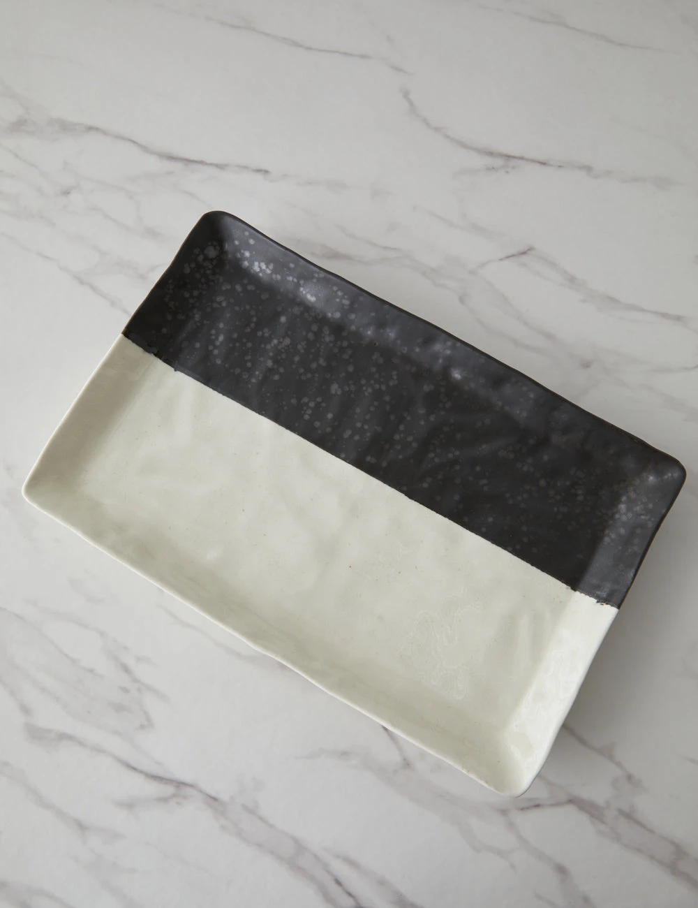 Anchor a chic centerpiece or create a stylish catchall on your dresser or entryway table with this stoneware platter. The two-tone finish offers an eye-catching impact with an understated touch.