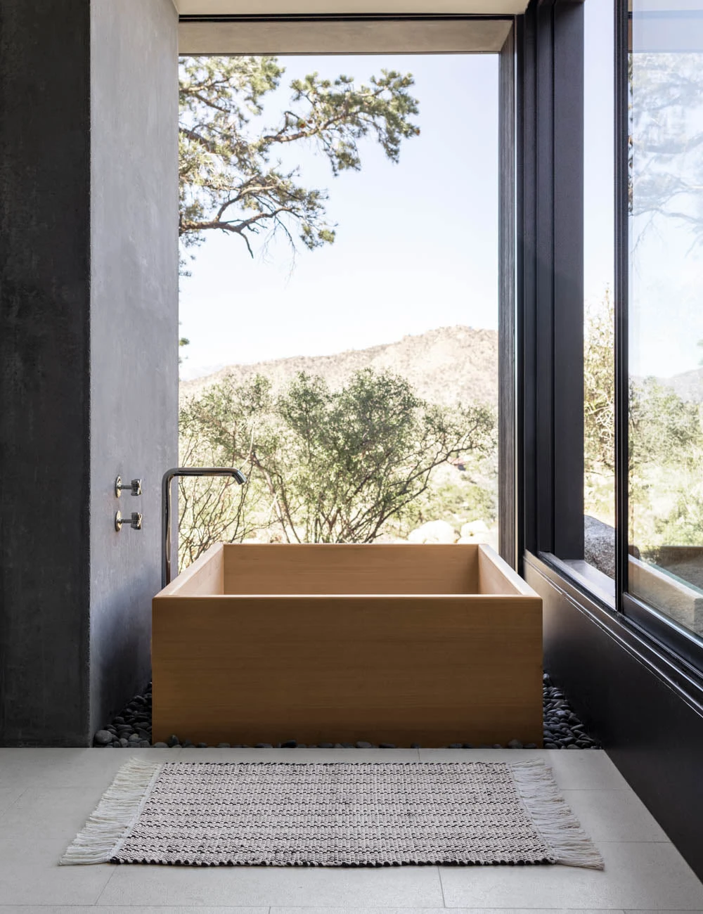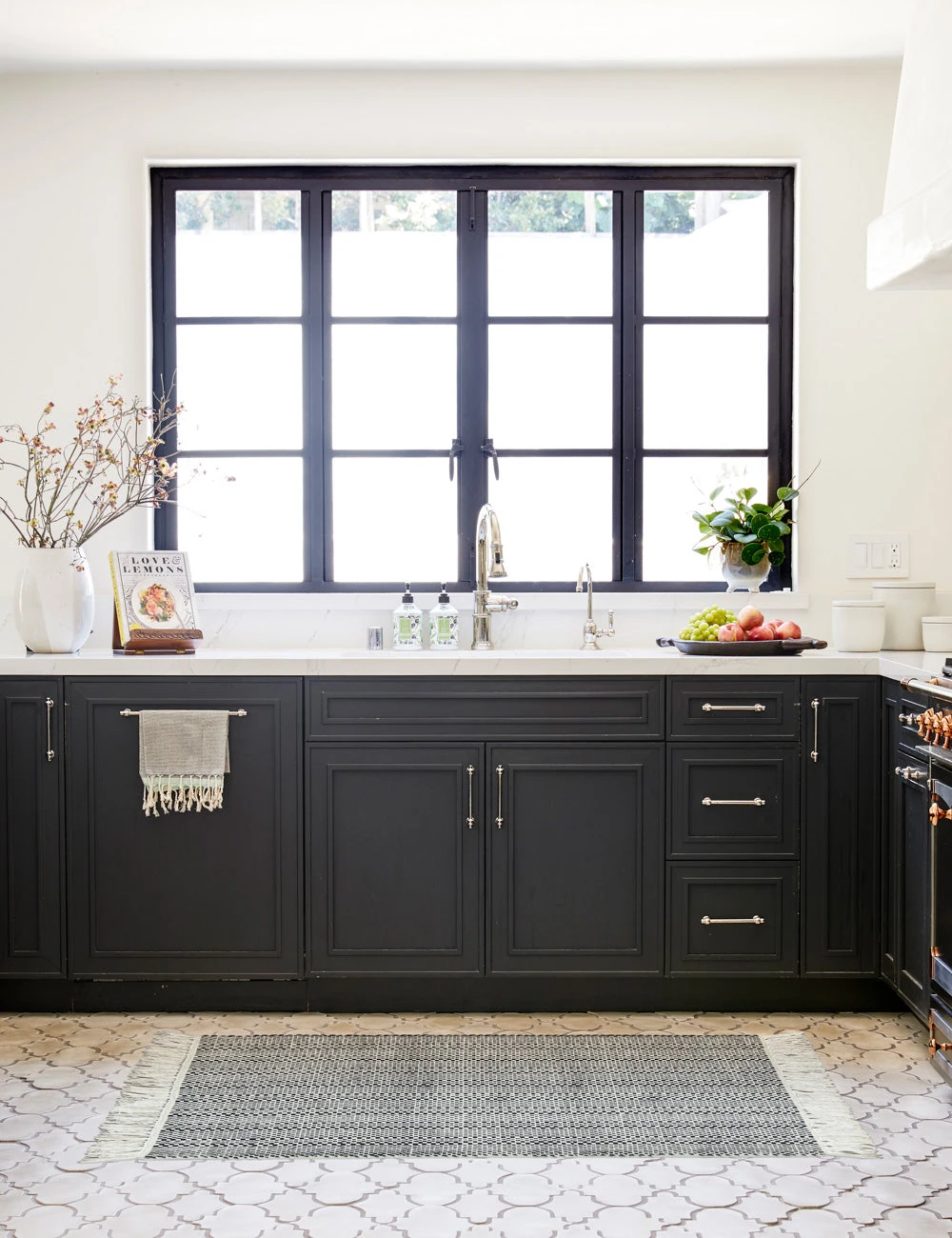 A high contrast pattern is handwoven into the Saskia Mat to create vibrant visual appeal. Made from natural cotton fibers, this mat is quick-drying, soft on the ground, and features a thick fringe to offer supple texture with a practical touch. This small mat is perfect for a cozy entryway or in front of a kitchen or bathroom sink.