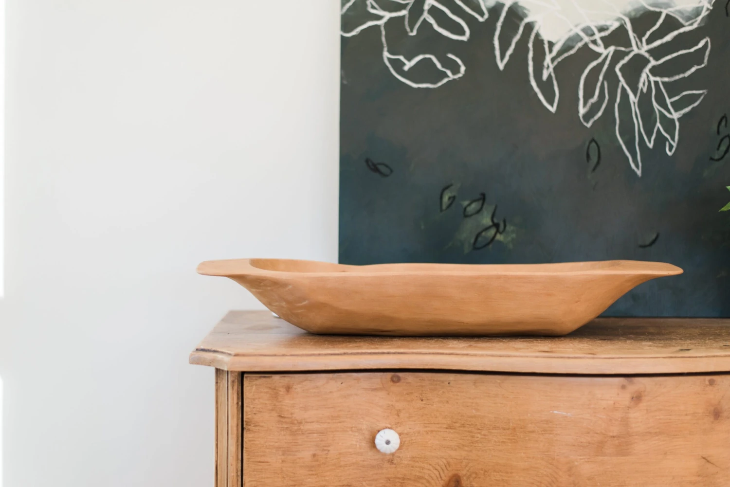 Handcrafted by European artisans, this vintage inspired dough bowl has been constructed with reclaimed wood and finished with a plant-based wax for a functional and cultured accent piece in the modern home.